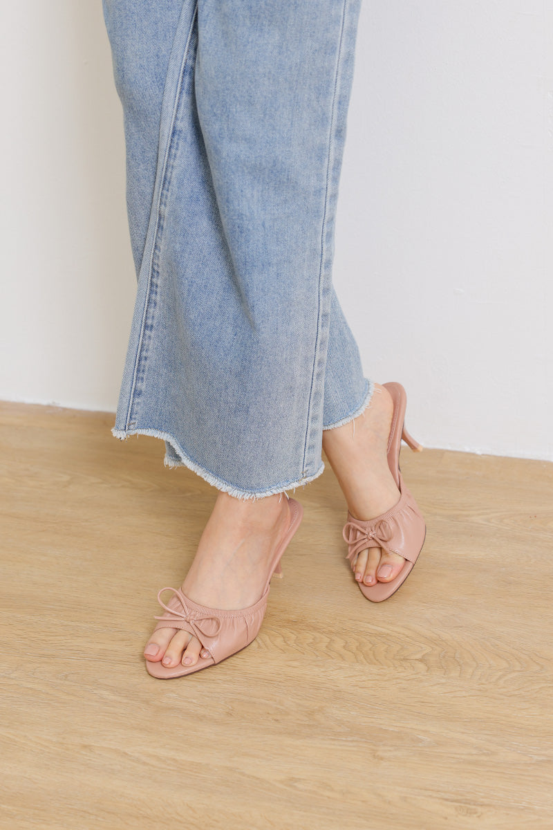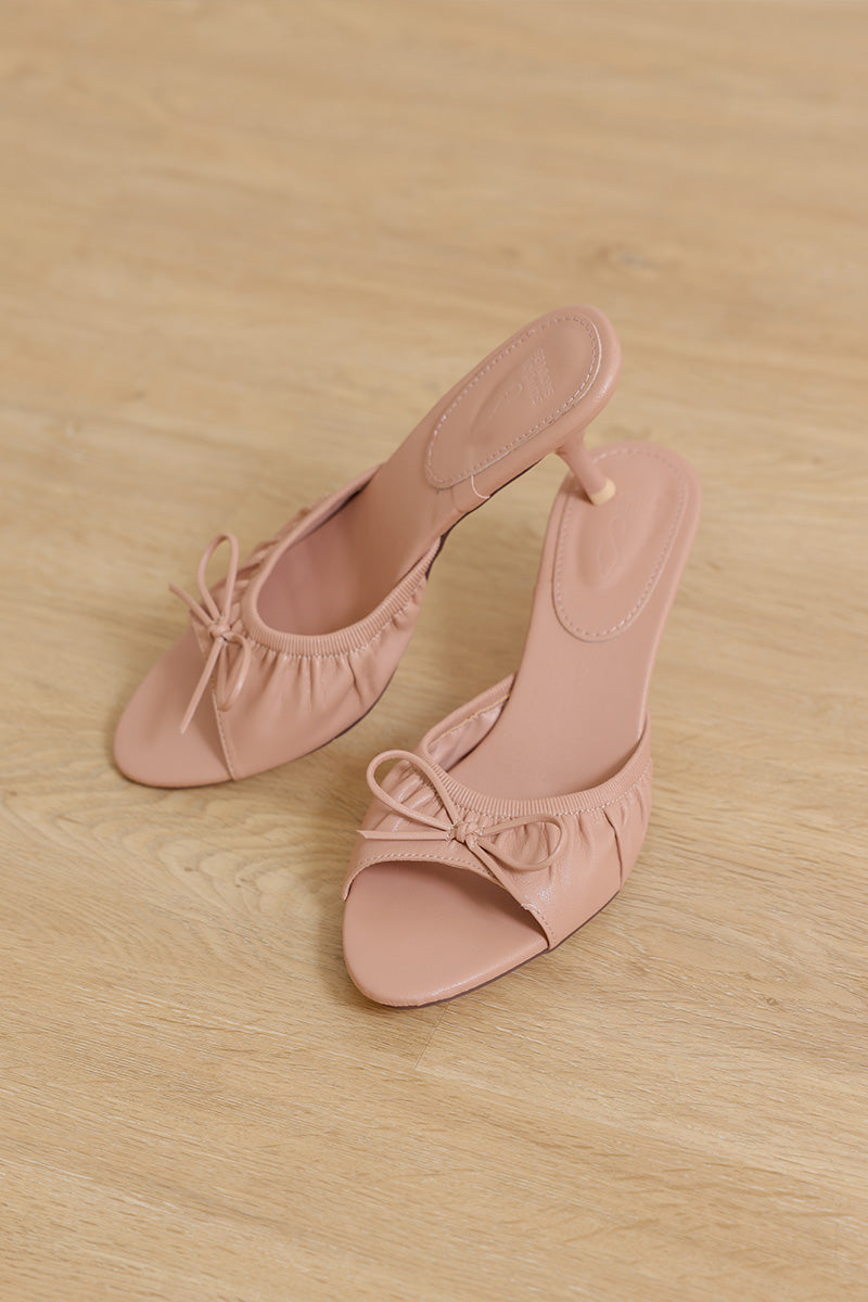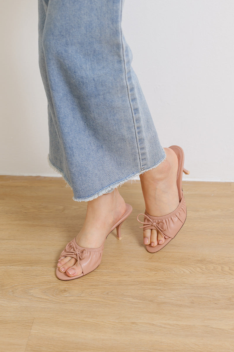 Sera Ruched Ribbon Slip-on Block Heels in Nude Pink