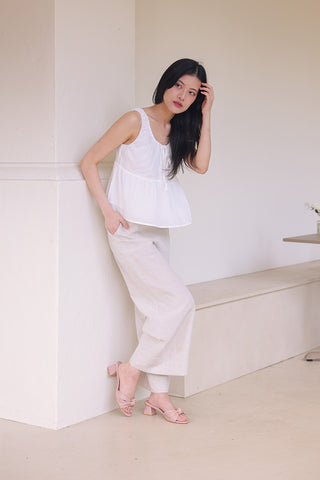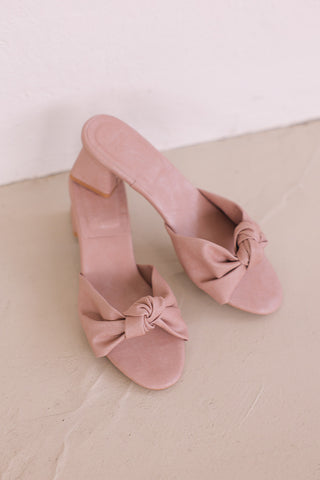 Sona Knotted Block Heels in Pink Waterproof Satin
