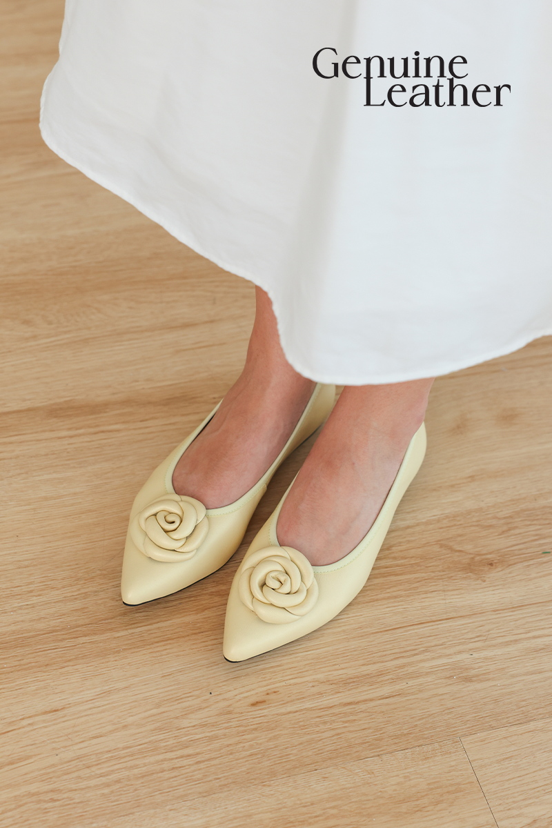 Camellia Sheep Leather Flats in Pearl Buttermilk