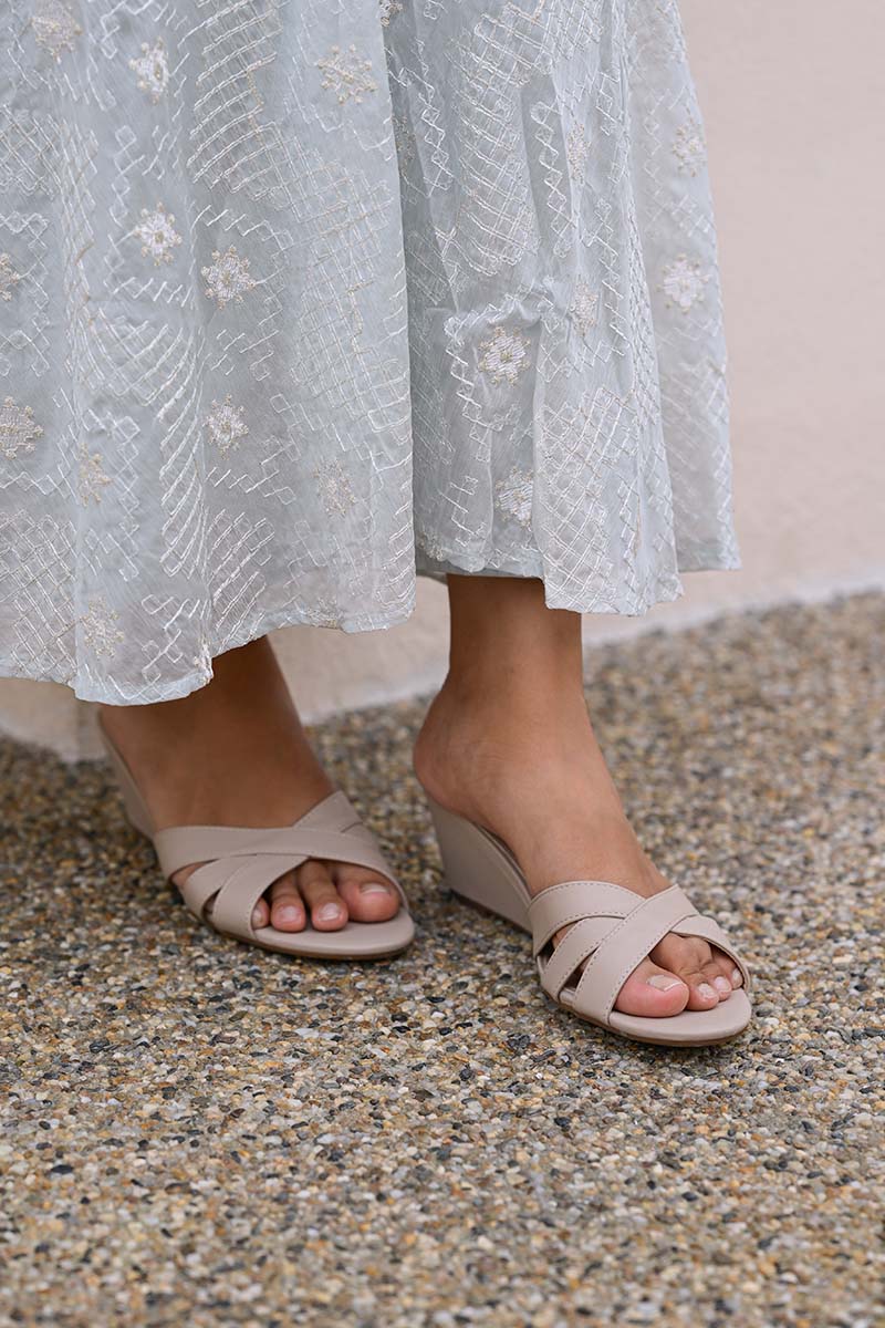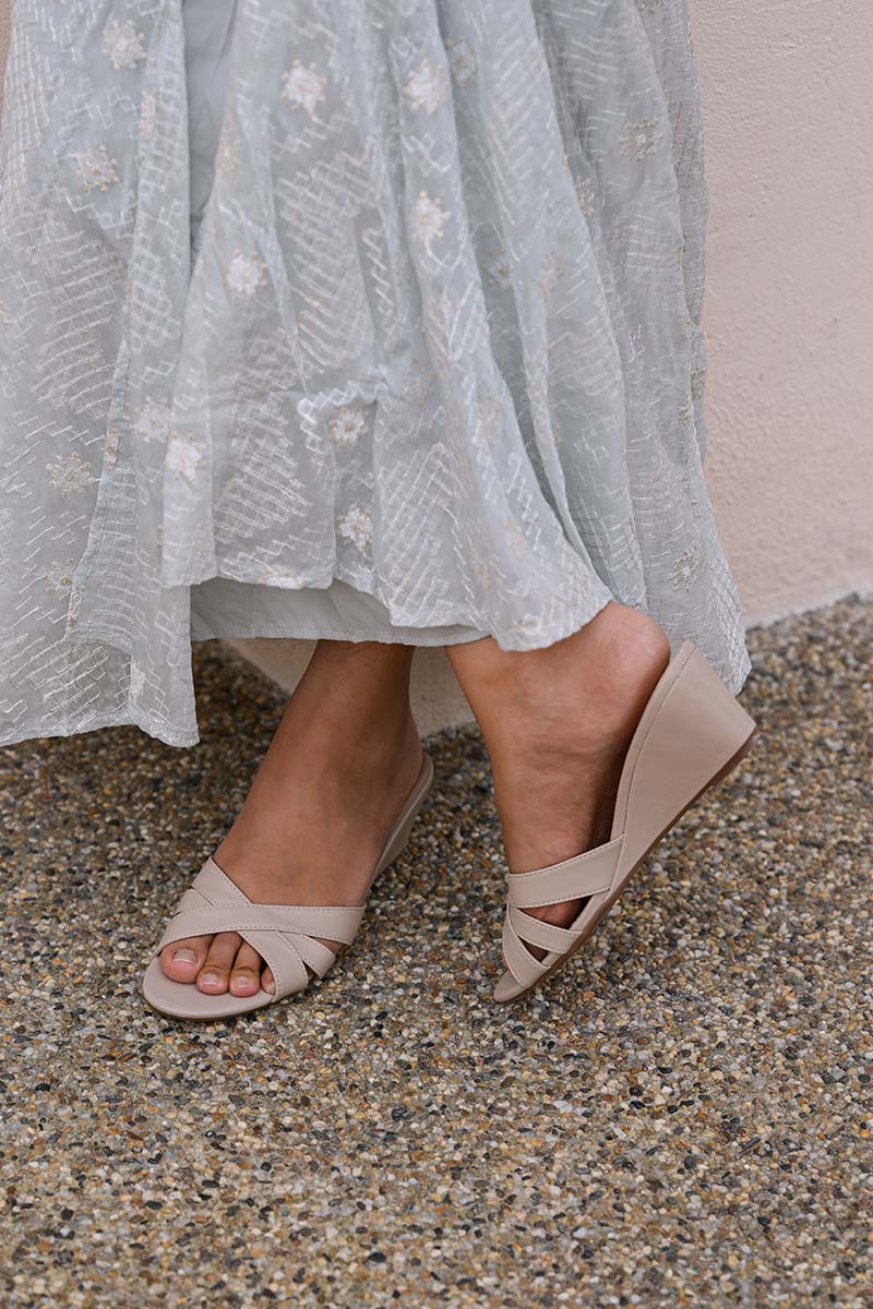 Amaris Cross Strap Wedges in Taupe