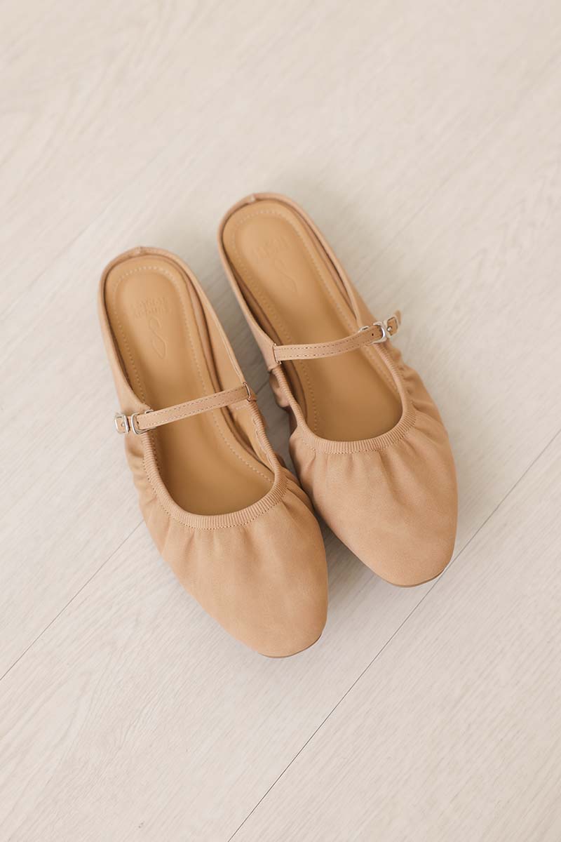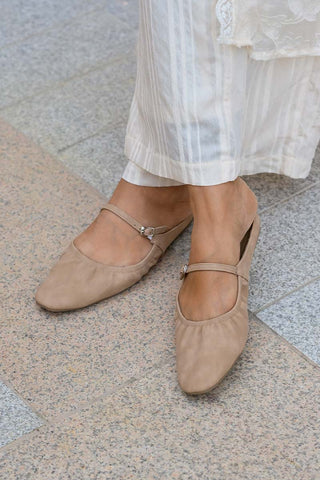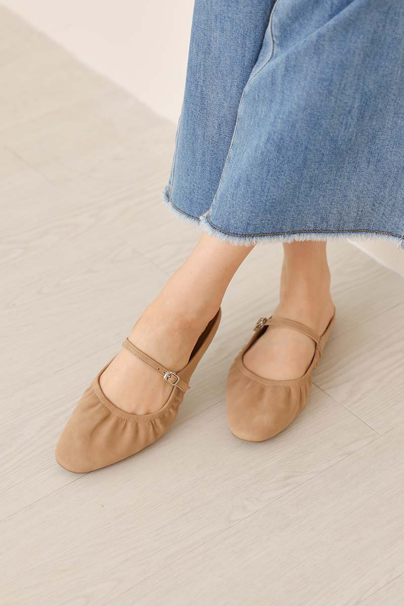 Halcy Ruching Flats in Taupe Waterproof Suede